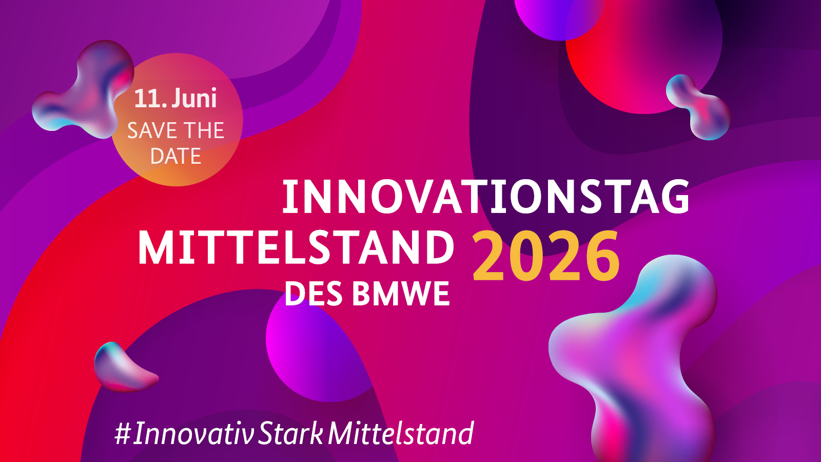 Innovativ. Stark. Mittelstand. – Unter diesem Leitgedanken präsentieren am 11. Juni 2026 beim Innovationstag Mittelstand rund 300 Aussteller ihre kreativen Ideen, zukunftsweisende Projekte und neue Technologien, die mit Unterstützung der themenoffenen Innovationsförderung des Bundesministeriums für Wirtschaft und Energie (BMWE) realisiert werden konnten. Die Ausstellung zum Anfassen und Mitmachen zeigt die Innovationsfähigkeit des deutschen Mittelstands und veranschaulicht die zentrale Bedeutung kleiner und mittlerer Unternehmen für unsere Wirtschaft: Denn mit Ideenreichtum, Forschergeist und unternehmerischem Mut begegnen sie aktuellen Herausforderungen.
