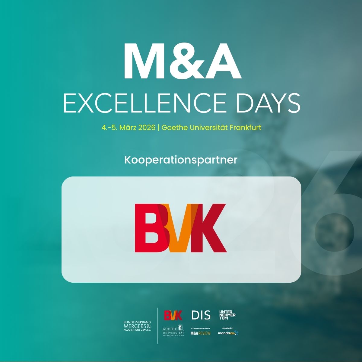 Als Kooperationspartner unterstützen wir diesen Dialog gezielt und freuen uns, Teil der M&A Excellence Days 2026 und des branchenweiten Austauschs zu sein.