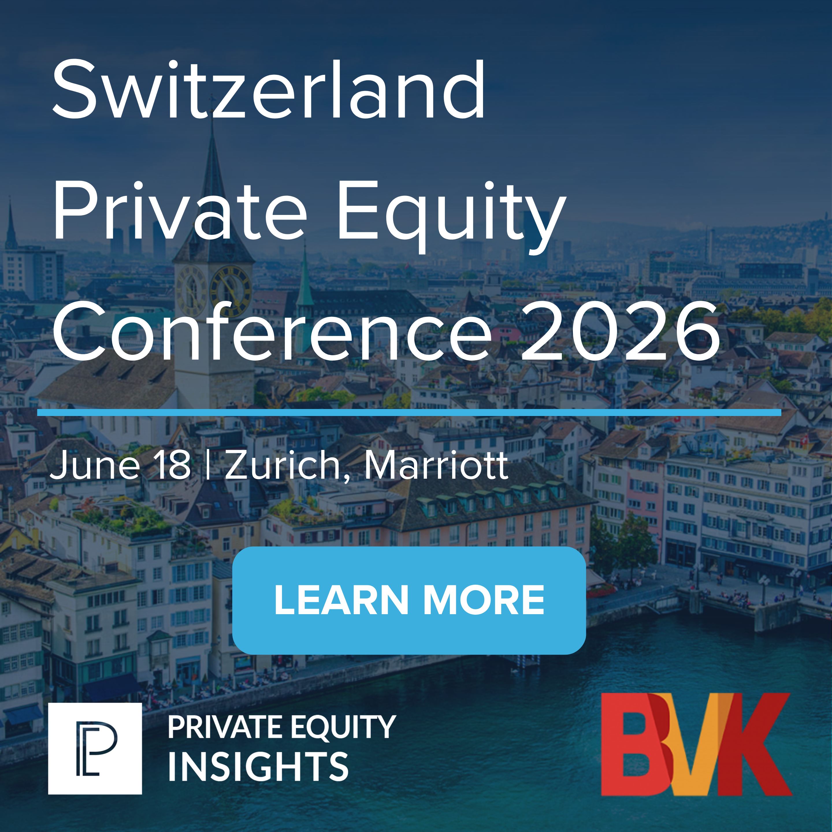 Am 18. Juni 2026 findet in Zürich die Switzerland Private Equity Conference von Private Equity Insights statt – eine der wichtigsten Private Equity Konferenzen für den Schweizer Markt. Erwartet werden zahlreiche führende GPs sowie LPs und weitere institutionelle Investoren aus dem Markt.