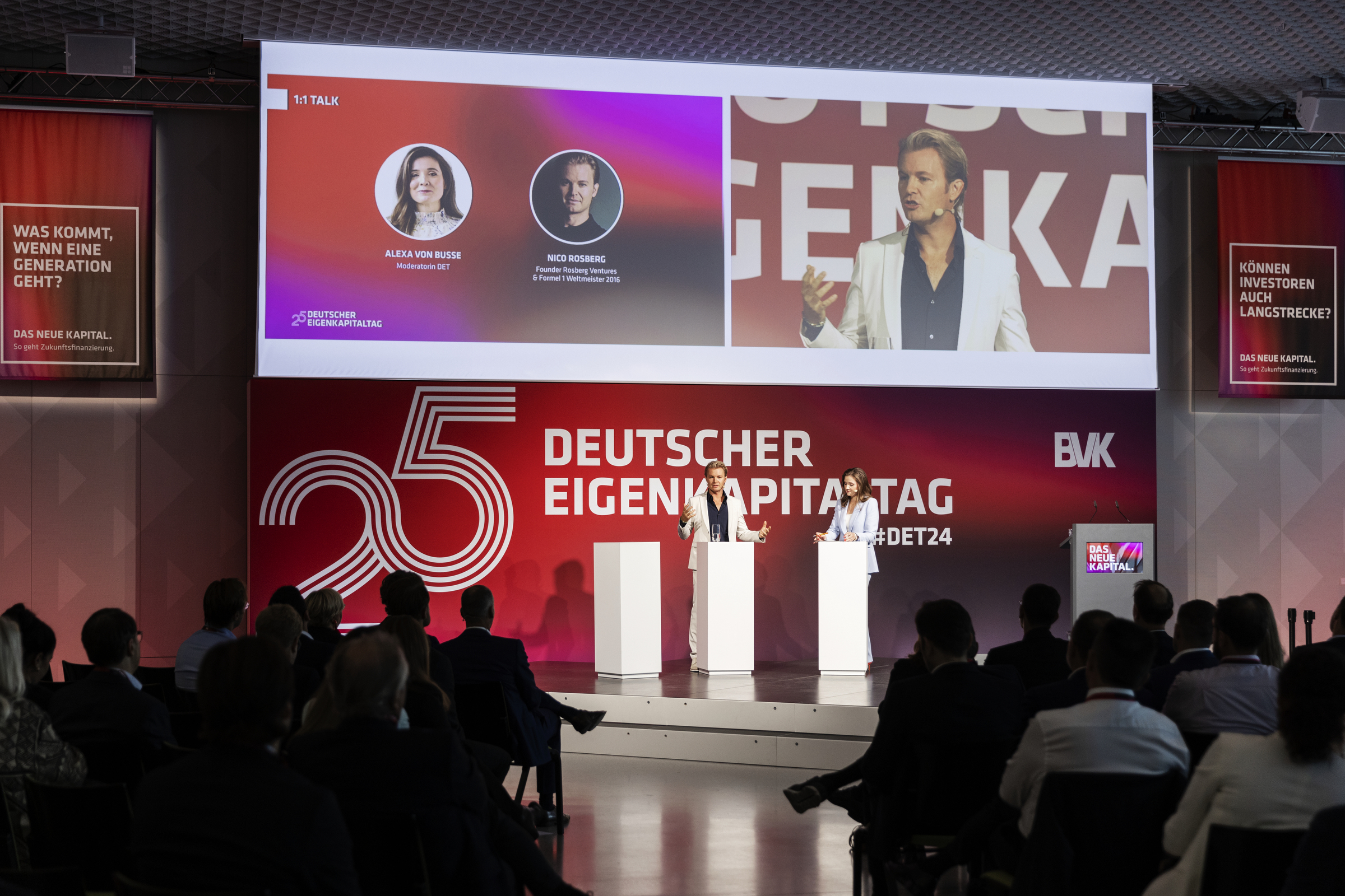Der 25. Deutsche Eigenkapitaltag im Berliner Futurium war ein voller Erfolg. Nach der Eröffnung von Dr. Ingo Krocke, Vorstandssprecher des BVK, fand der 1:1-Talk von Nico Rosberg, Founder Rosberg Ventures & Formel 1 Weltmeister 2016, mit unserer Tagesmoderatorin Alexa von Busse statt. Im Anschluss hielt Stefan B. Wintels, Vorstandsvorsitzender der KfW, einen Impuls. Nach einem weiteren Implus von Ralf Wintergerst, Präsident Bitkom, ging es in die Mittagspause.