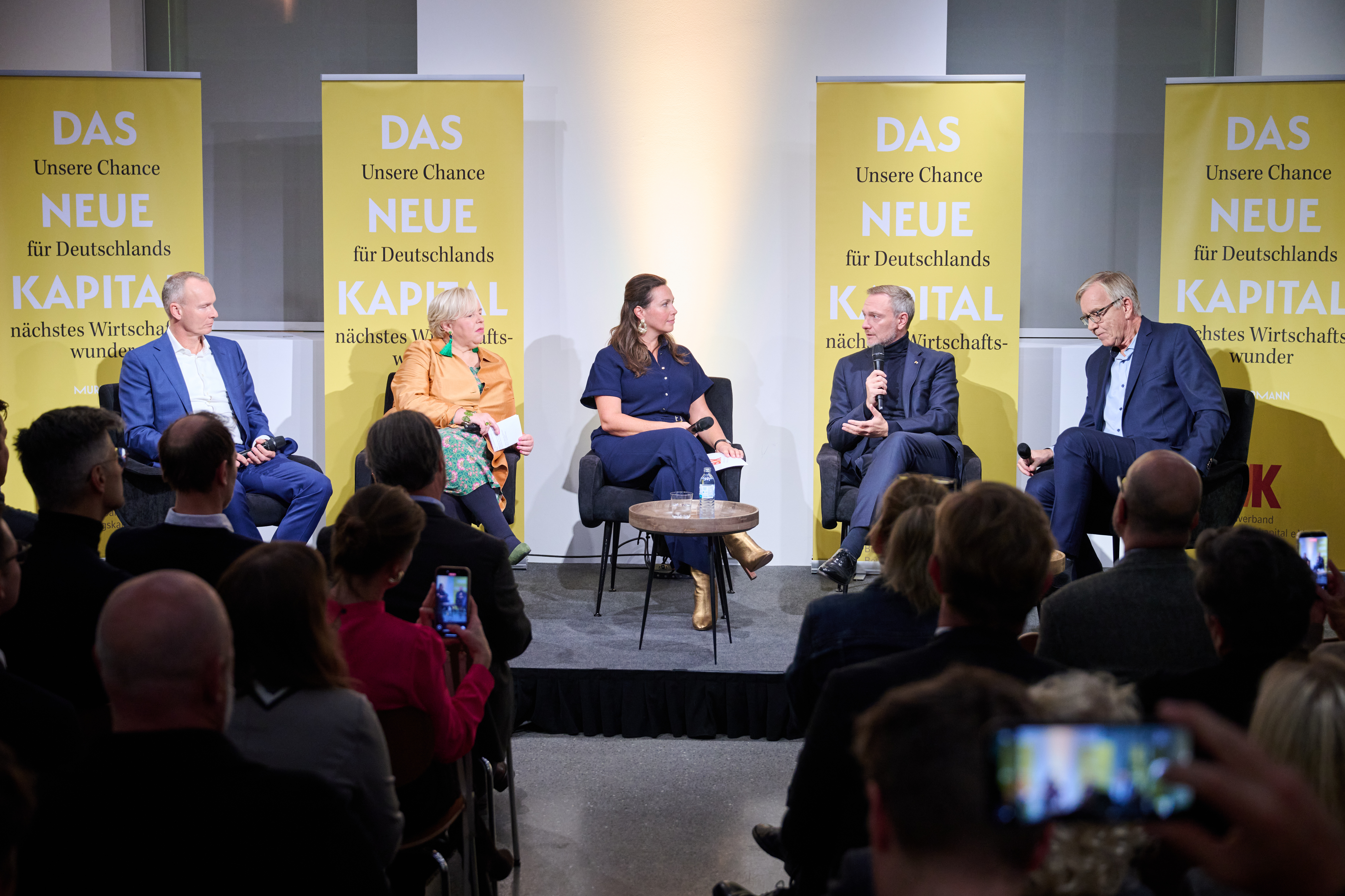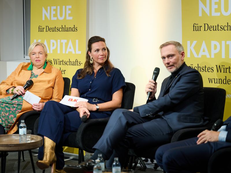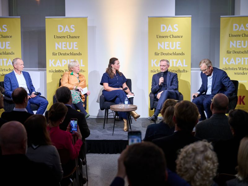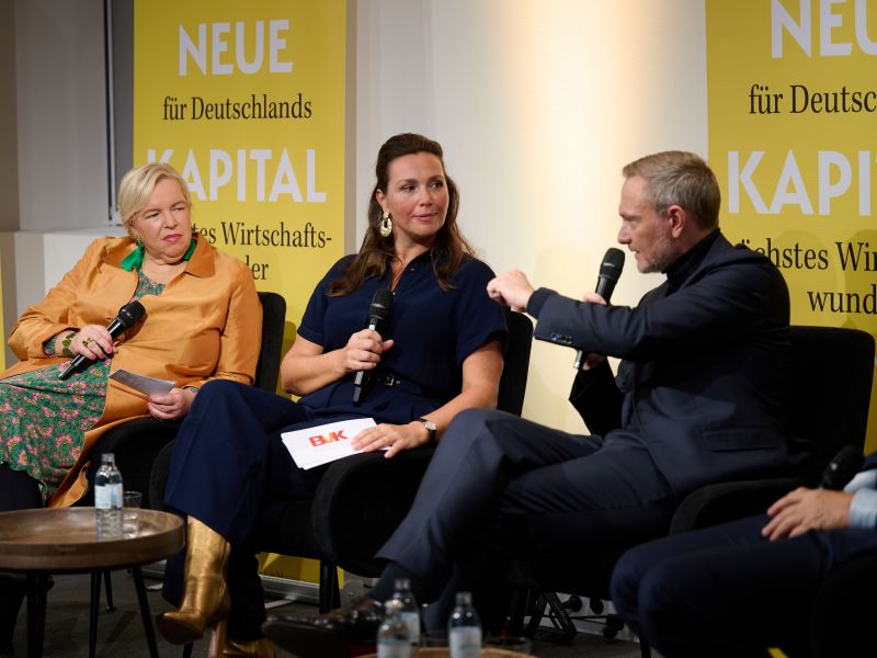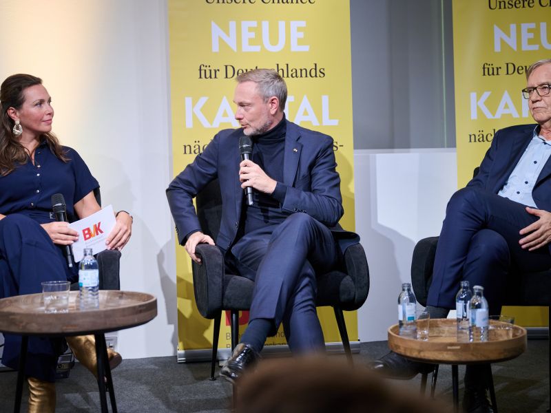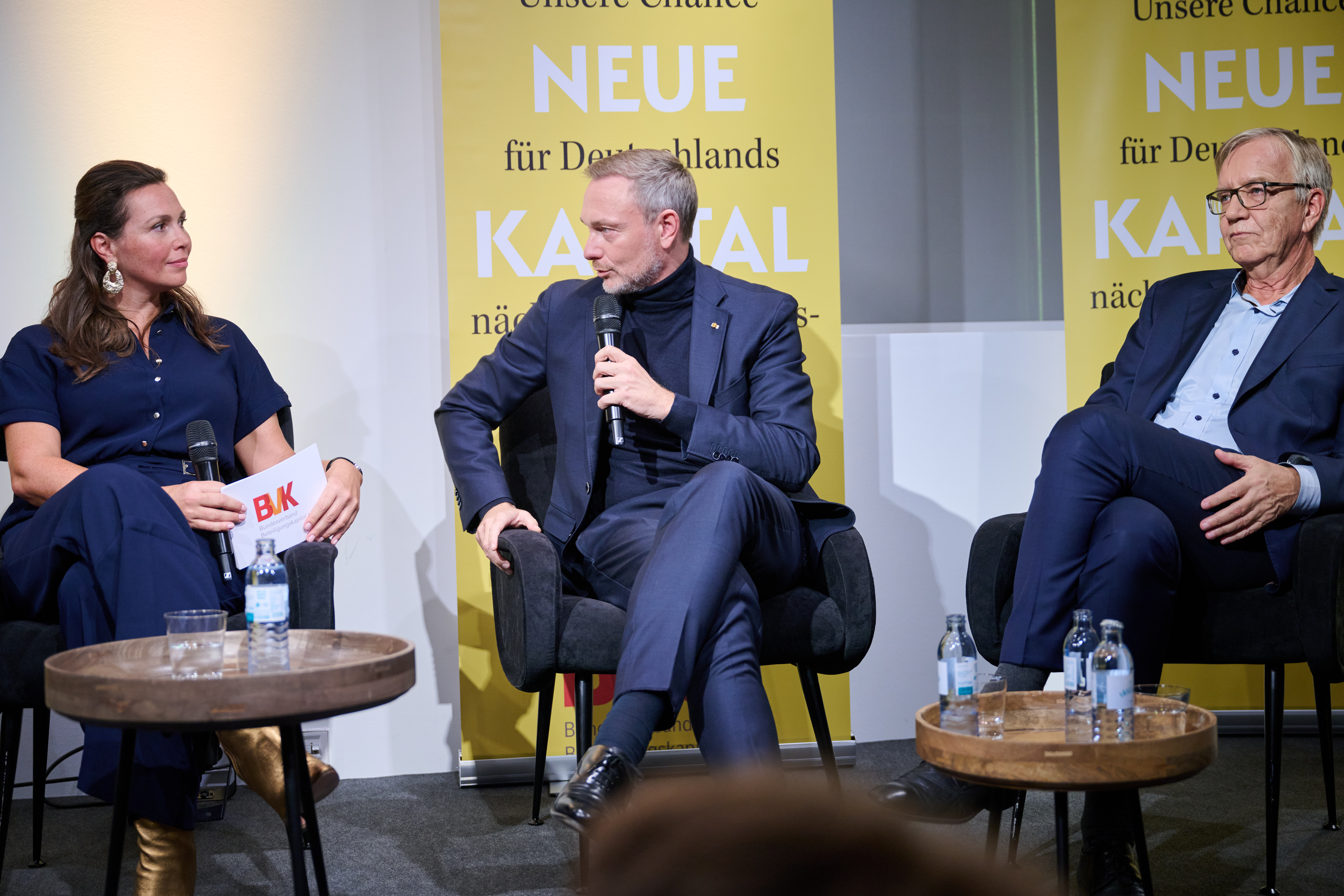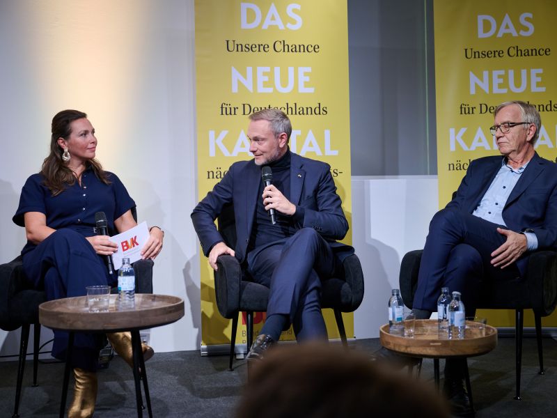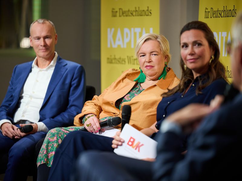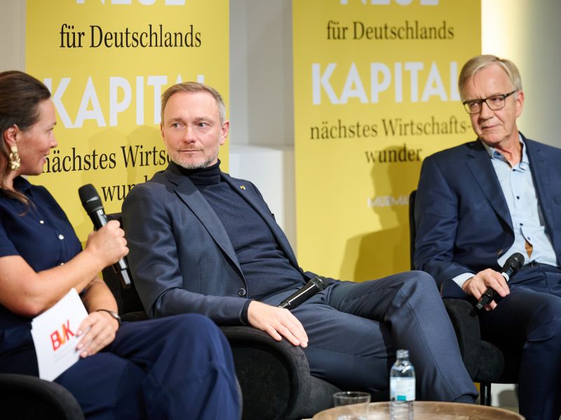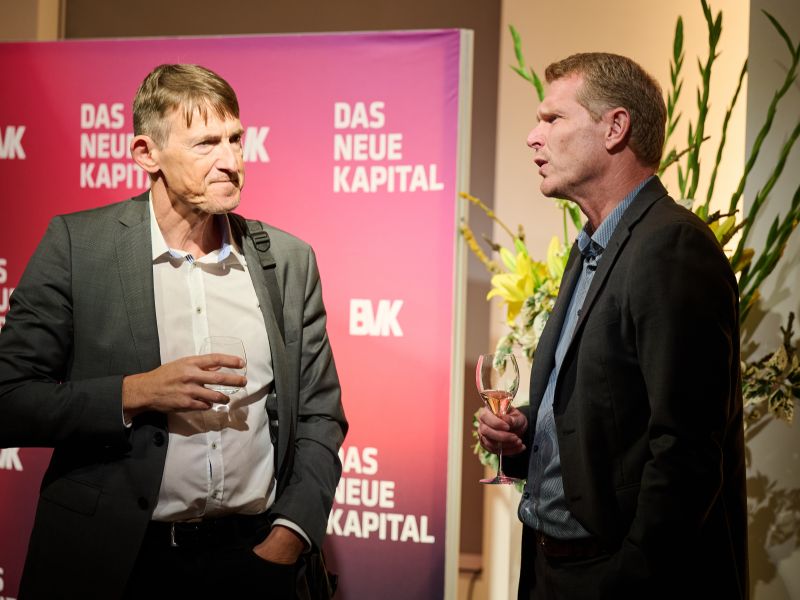 Am 4. November 2025 präsentierte der BVK gemeinsam mit dem Murmann Verlag das neue Buch Das Neue Kapital im Berliner PalaisPopulaire. Im Gespräch mit den Herausgebern und BVK-Vorstandssprechern Ulrike Hinrichs und Dr. Ingo Krocke sowie Dr. Sven Murmann, Christian Lindner (Bundesminister der Finanzen a. D.) und Dr. Dietmar Bartsch MdB standen die Fragen im Mittelpunkt, wie privates Kapital Innovation, Klimaschutz und Wettbewerbsfähigkeit vorantreiben kann – und welche Impulse es für ein neues Wirtschaftswunder setzt. Zum Ausklang bot der Abend spannende – teils auch kontroverse – Perspektiven und anregenden Austausch bei Drinks & Dinner.