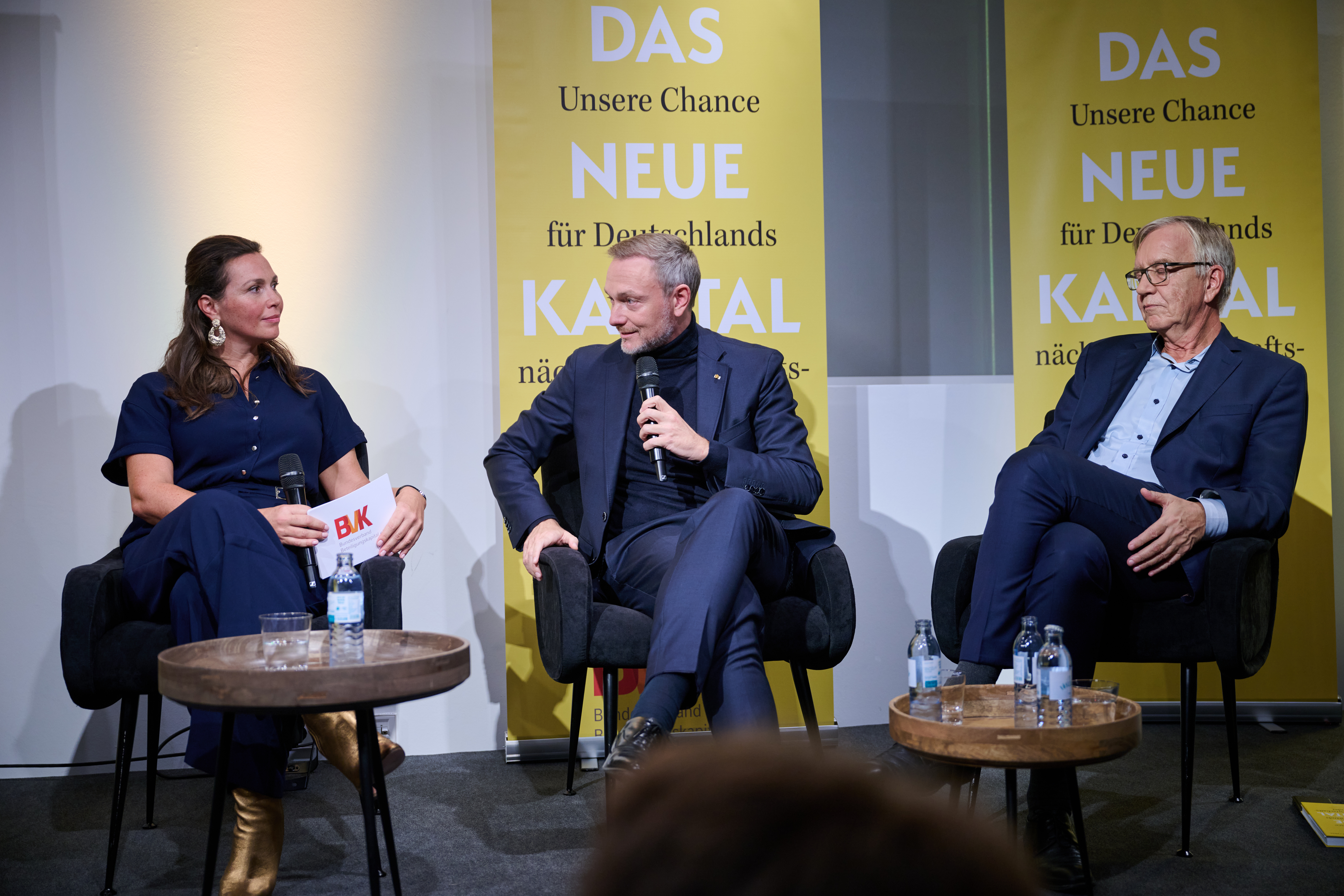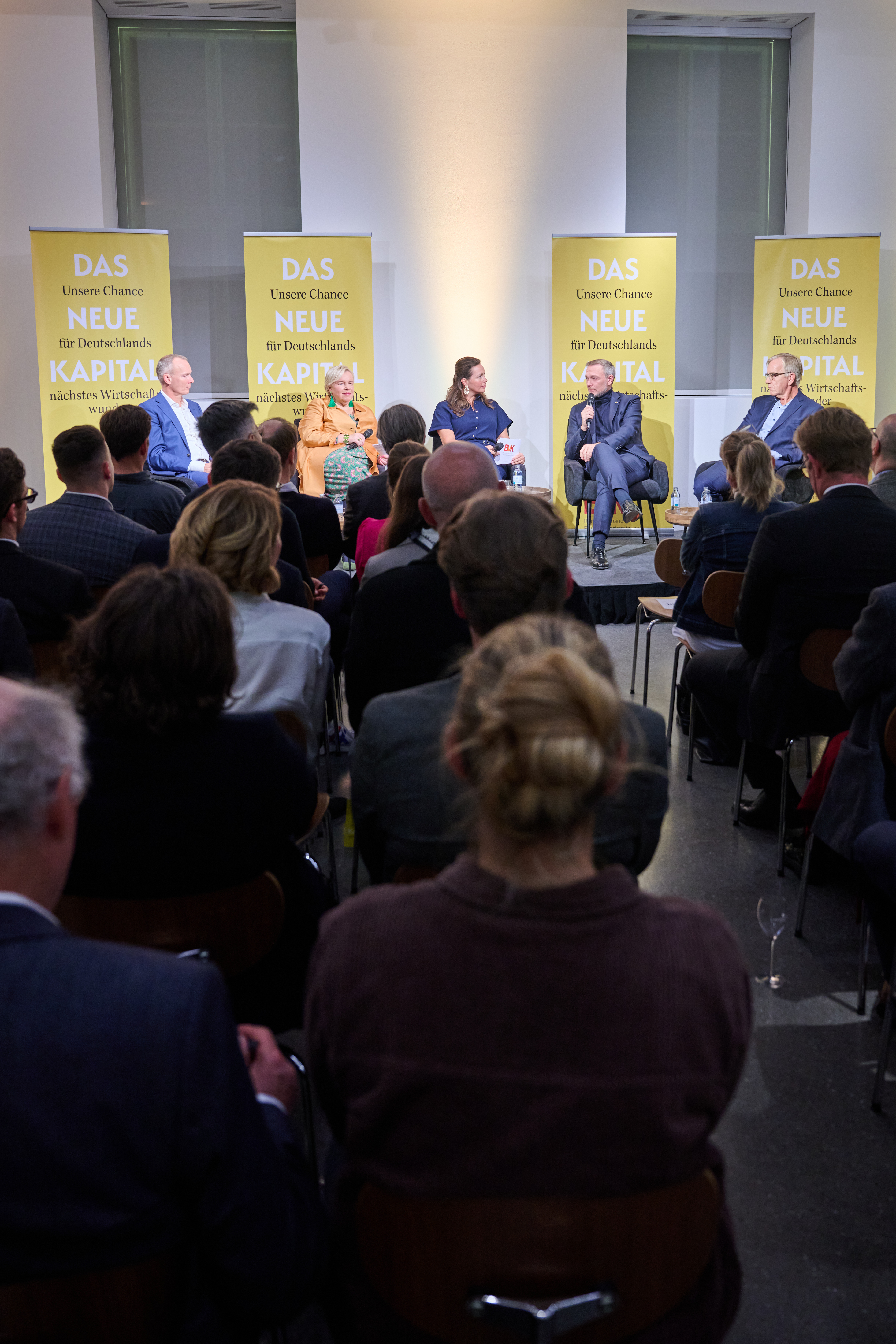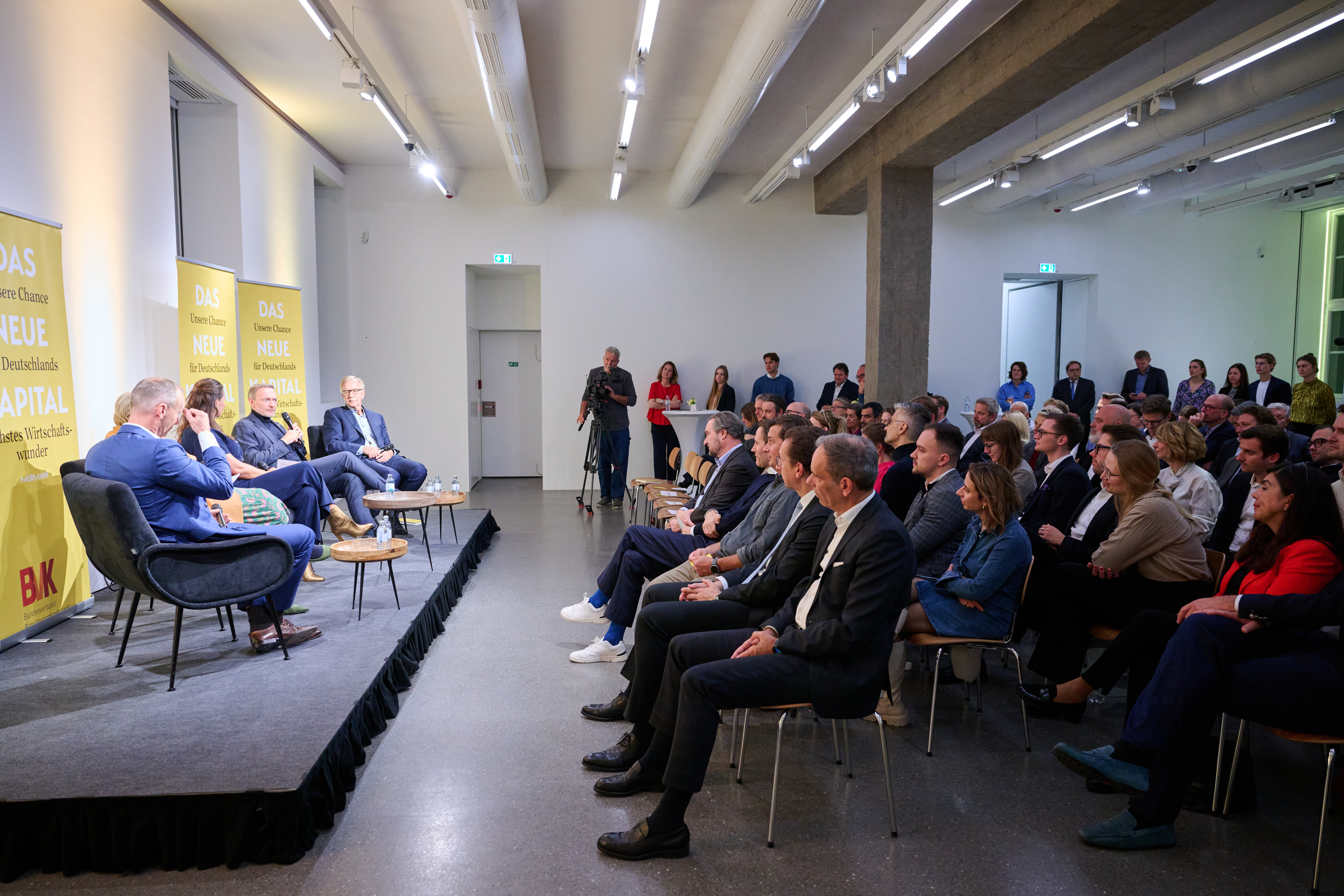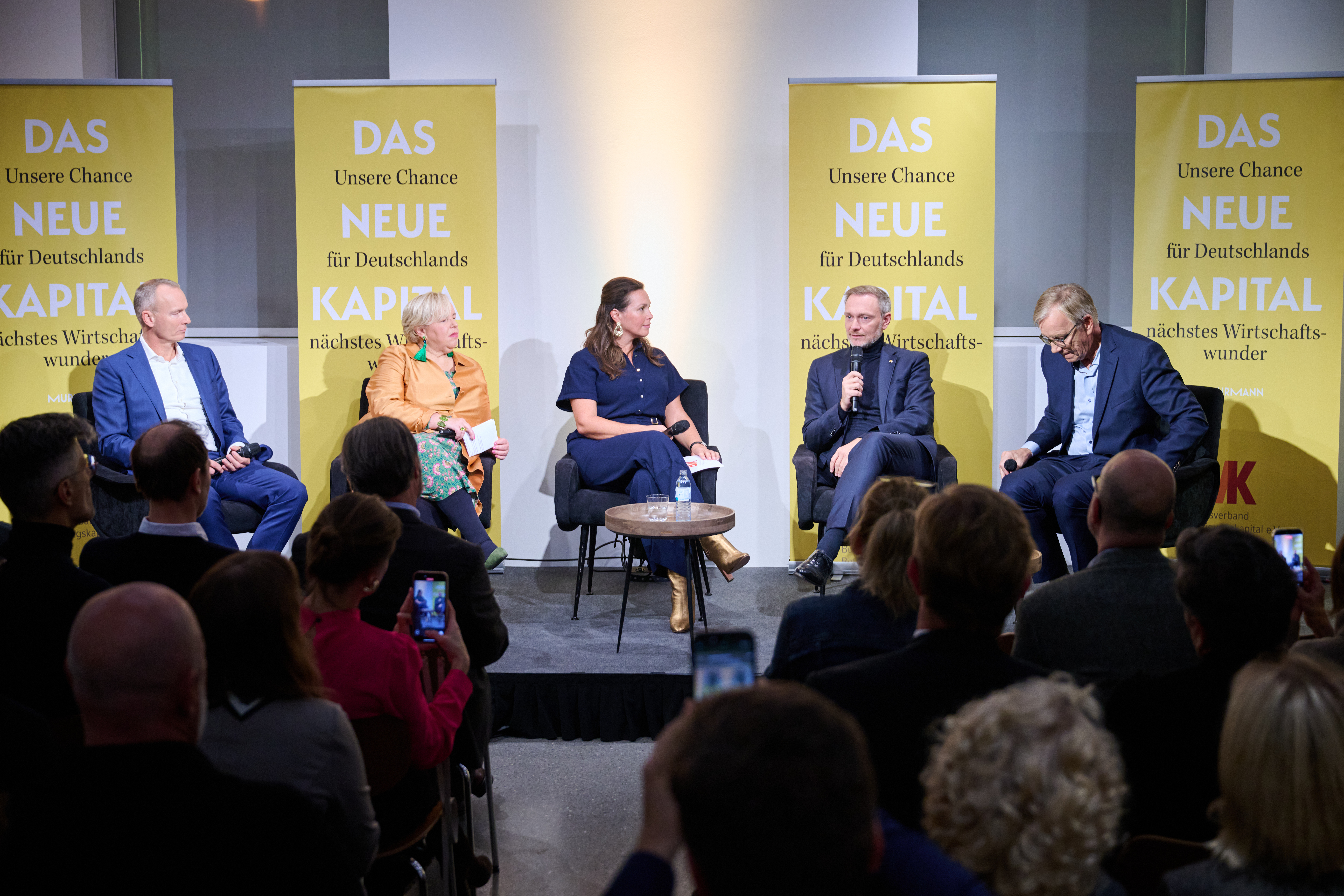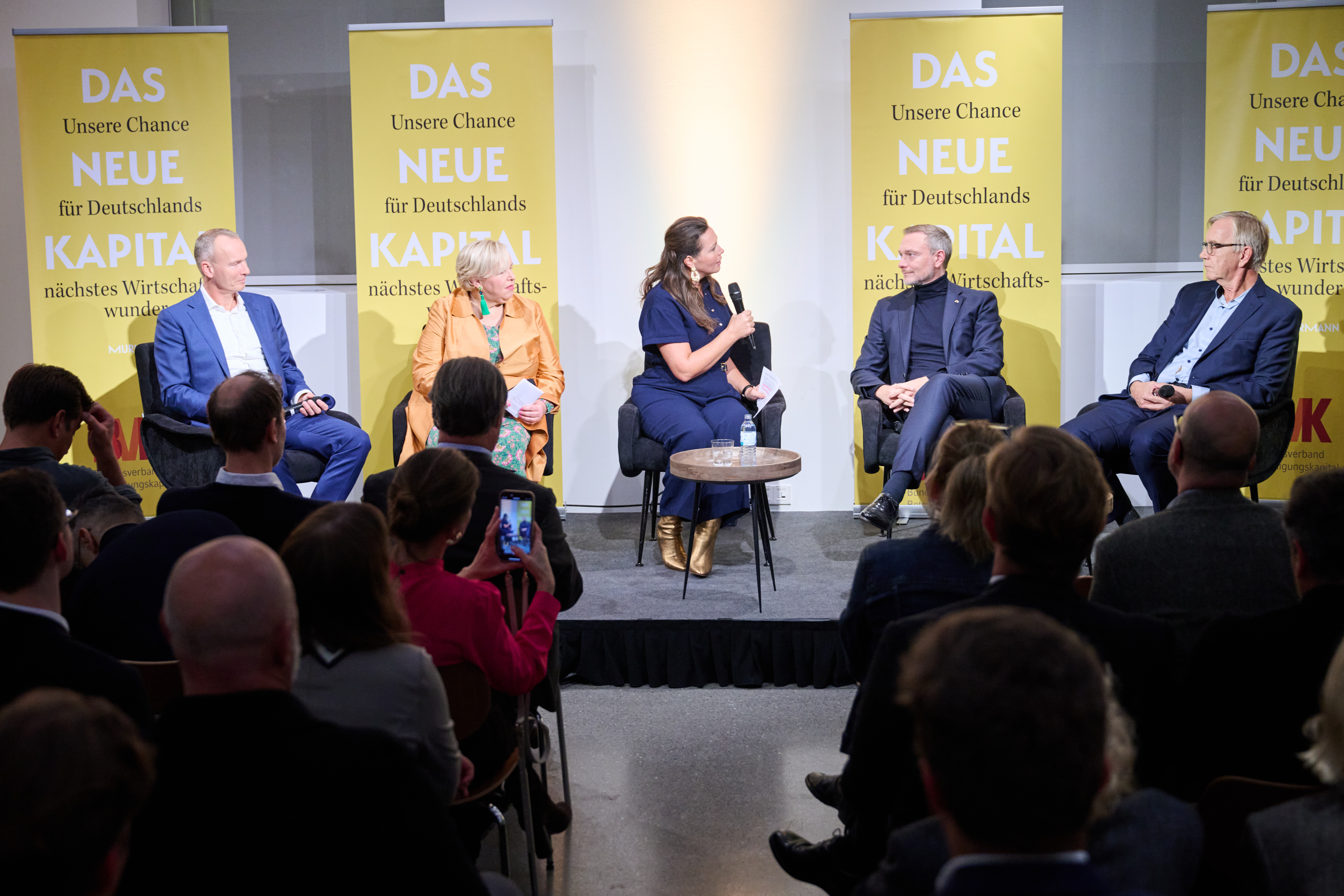 Am 4. November 2025 präsentierte der BVK gemeinsam mit dem Murmann Verlag das neue Buch Das Neue Kapital im Berliner PalaisPopulaire. Im Gespräch mit den Herausgebern und BVK-Vorstandssprechern Ulrike Hinrichs und Dr. Ingo Krocke sowie Dr. Sven Murmann, Christian Lindner (Bundesminister der Finanzen a. D.) und Dr. Dietmar Bartsch MdB standen die Fragen im Mittelpunkt, wie privates Kapital Innovation, Klimaschutz und Wettbewerbsfähigkeit vorantreiben kann – und welche Impulse es für ein neues Wirtschaftswunder setzt. Zum Ausklang bot der Abend spannende – teils auch kontroverse – Perspektiven und anregenden Austausch bei Drinks & Dinner.