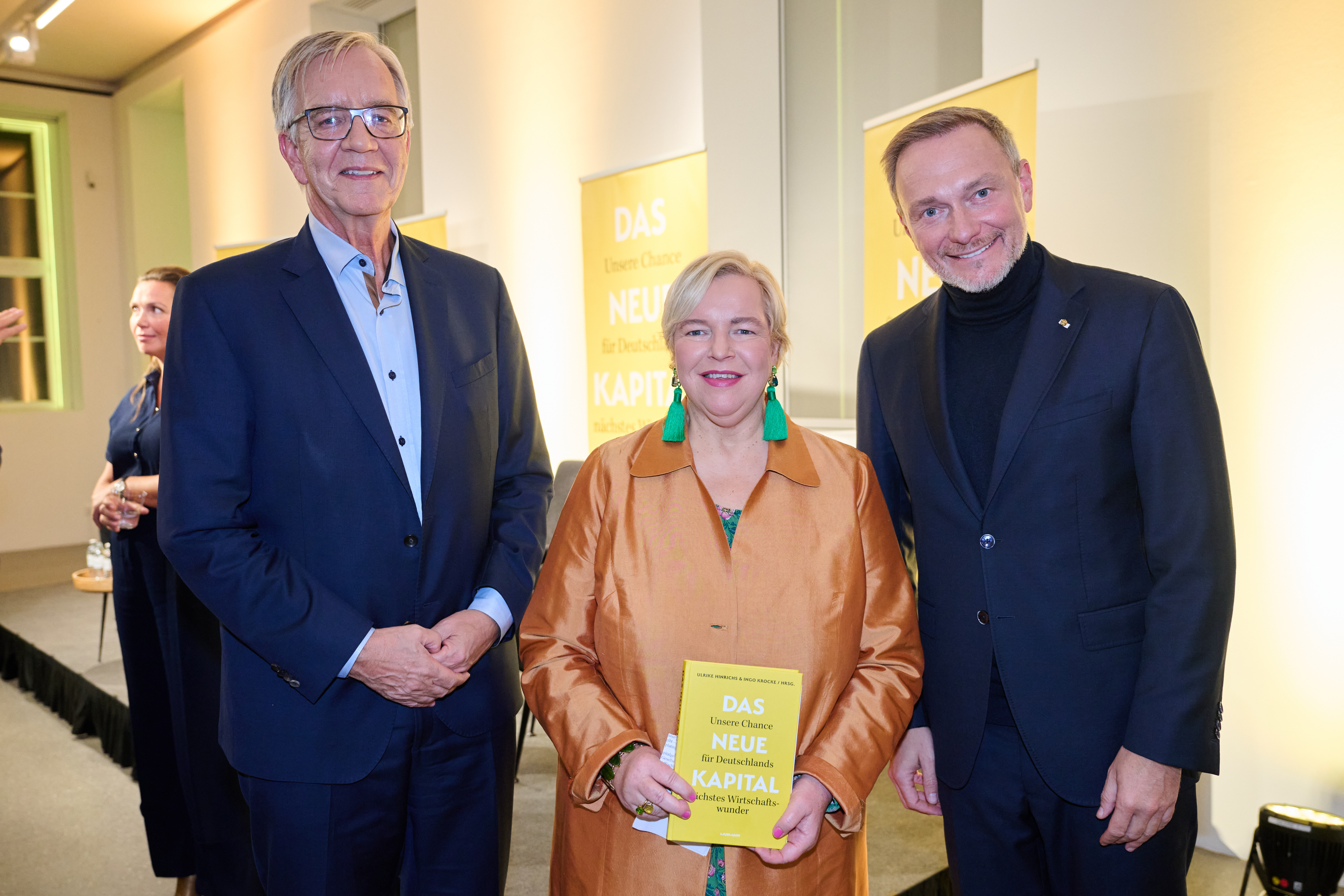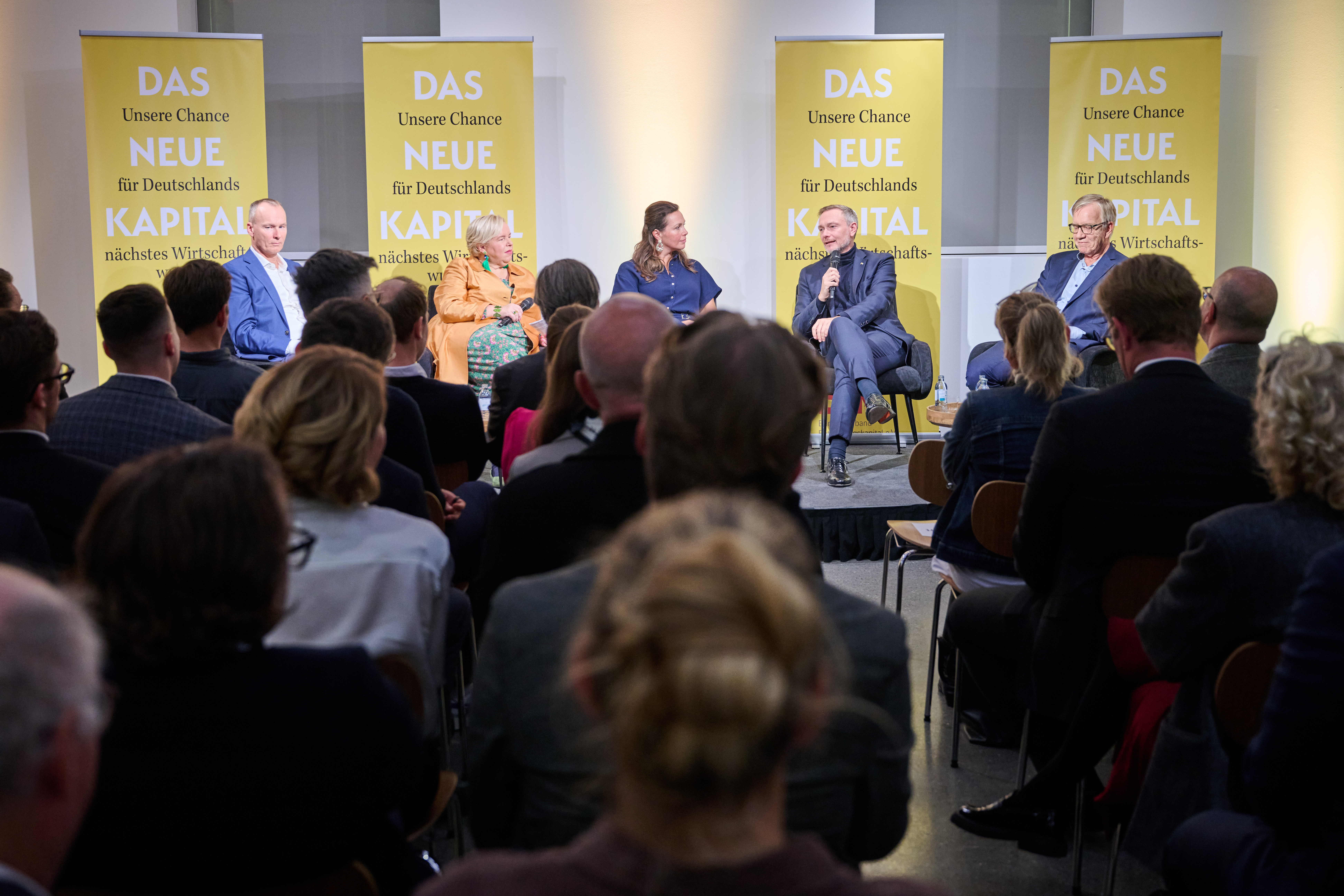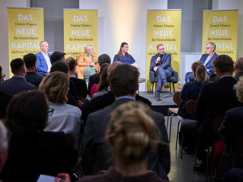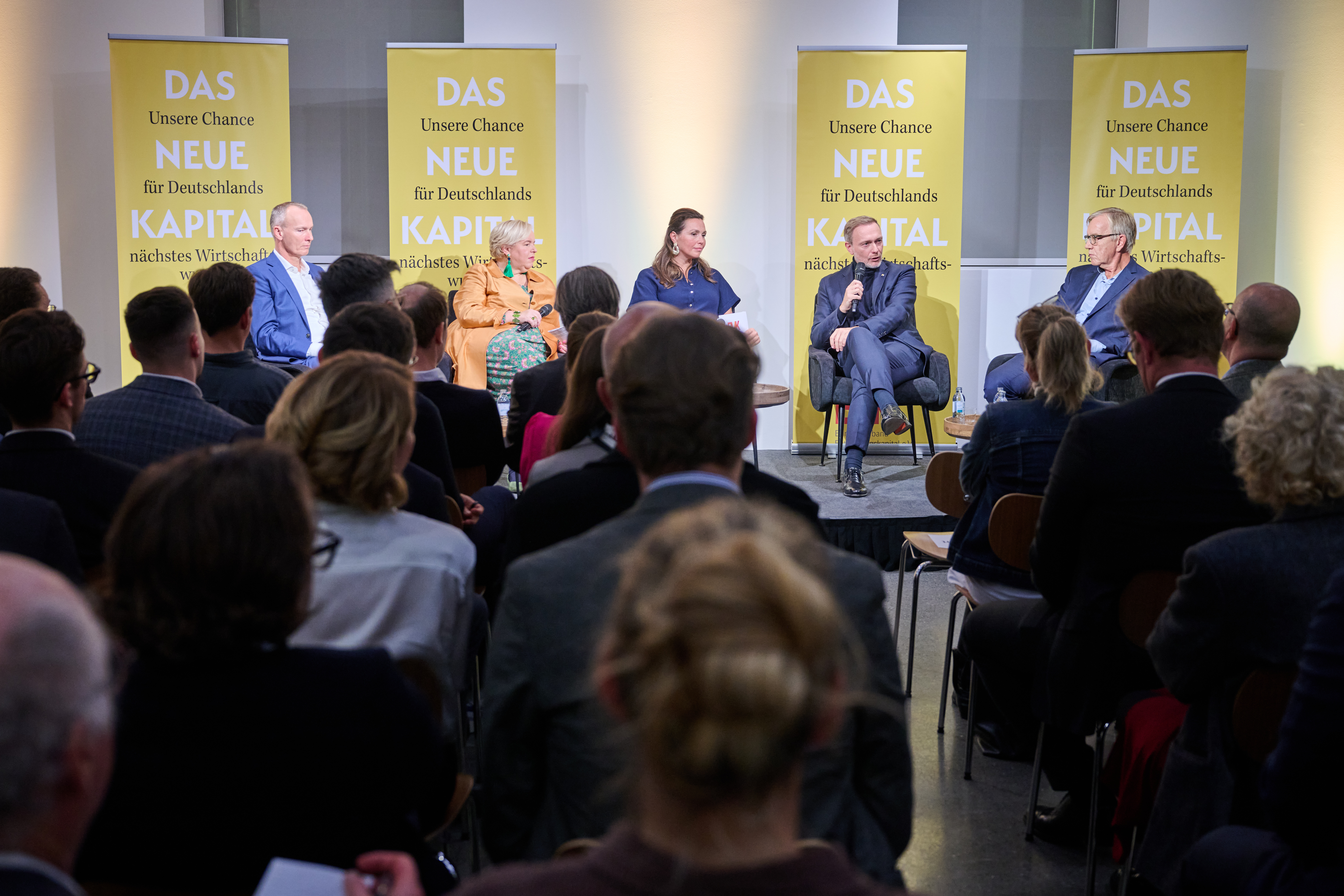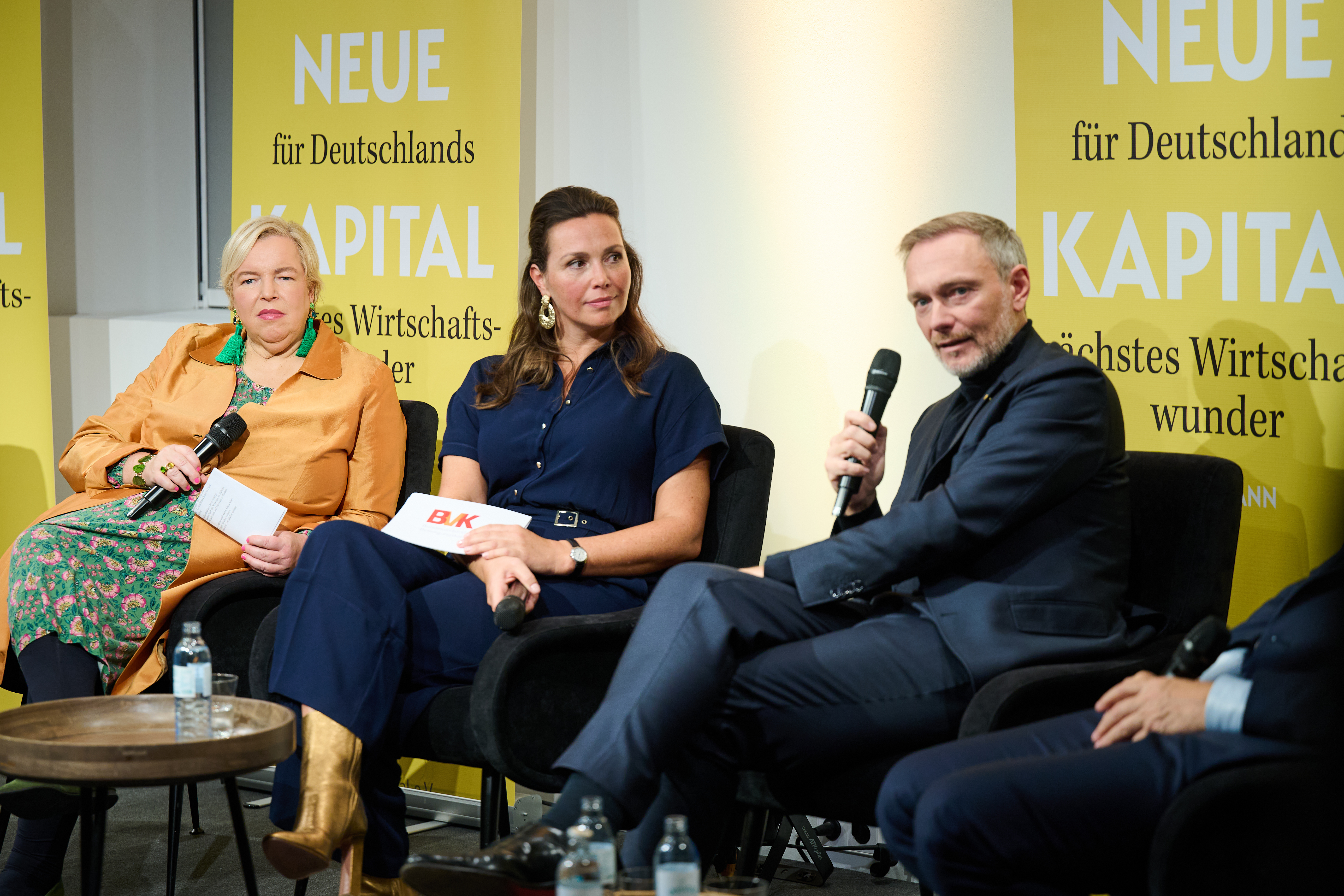 Am 4. November 2025 präsentierte der BVK gemeinsam mit dem Murmann Verlag das neue Buch Das Neue Kapital im Berliner PalaisPopulaire. Im Gespräch mit den Herausgebern und BVK-Vorstandssprechern Ulrike Hinrichs und Dr. Ingo Krocke sowie Dr. Sven Murmann, Christian Lindner (Bundesminister der Finanzen a. D.) und Dr. Dietmar Bartsch MdB standen die Fragen im Mittelpunkt, wie privates Kapital Innovation, Klimaschutz und Wettbewerbsfähigkeit vorantreiben kann – und welche Impulse es für ein neues Wirtschaftswunder setzt. Zum Ausklang bot der Abend spannende – teils auch kontroverse – Perspektiven und anregenden Austausch bei Drinks & Dinner.