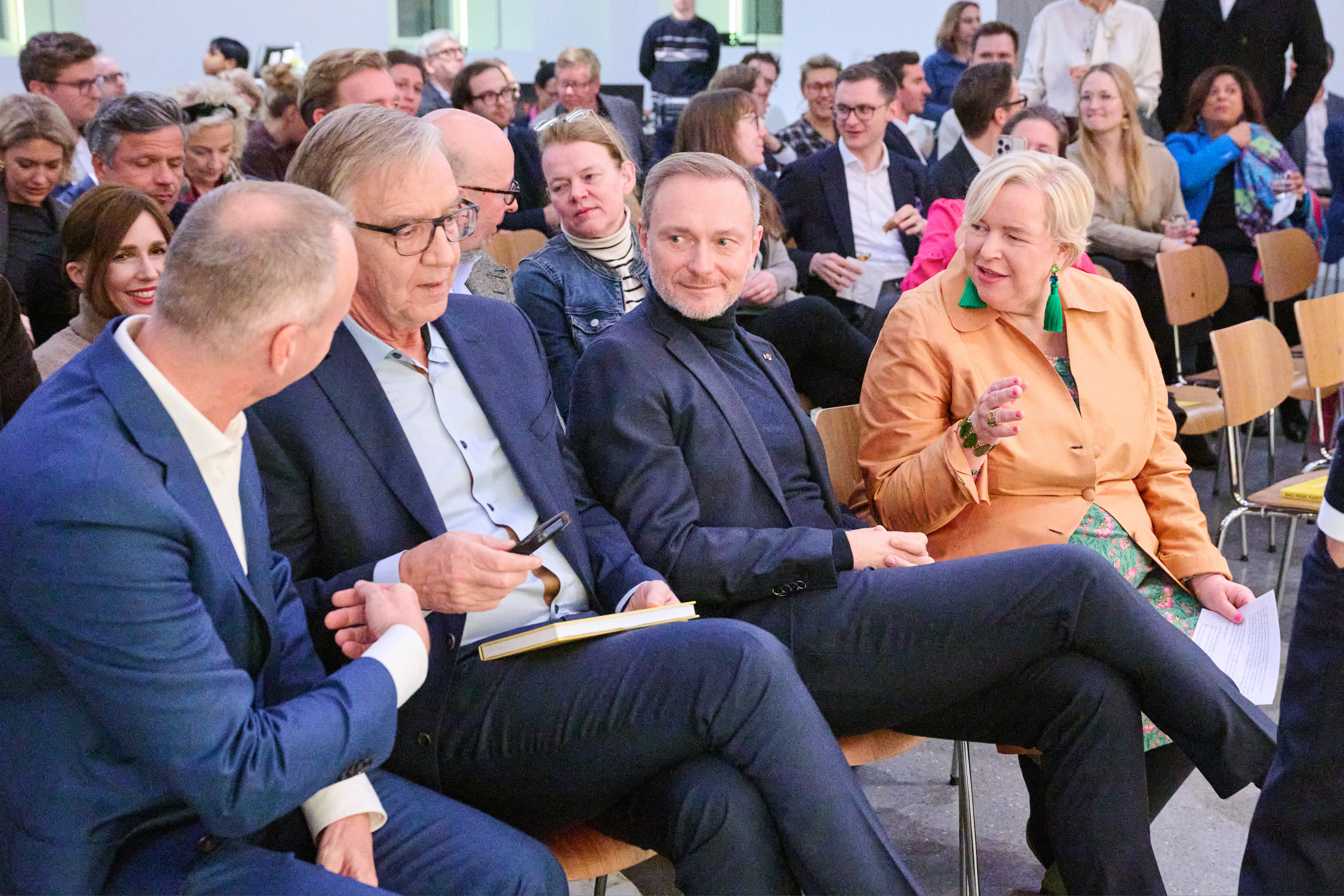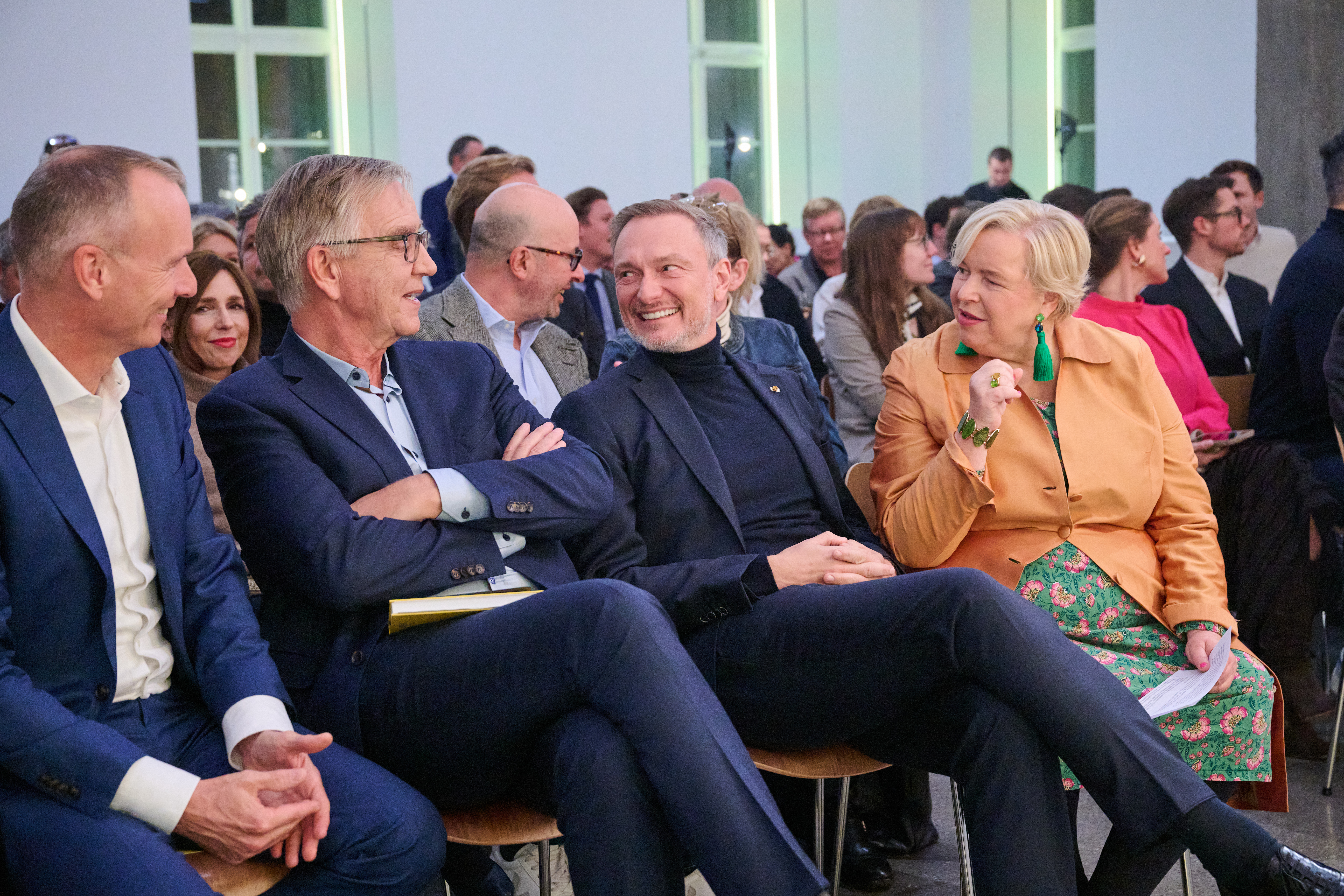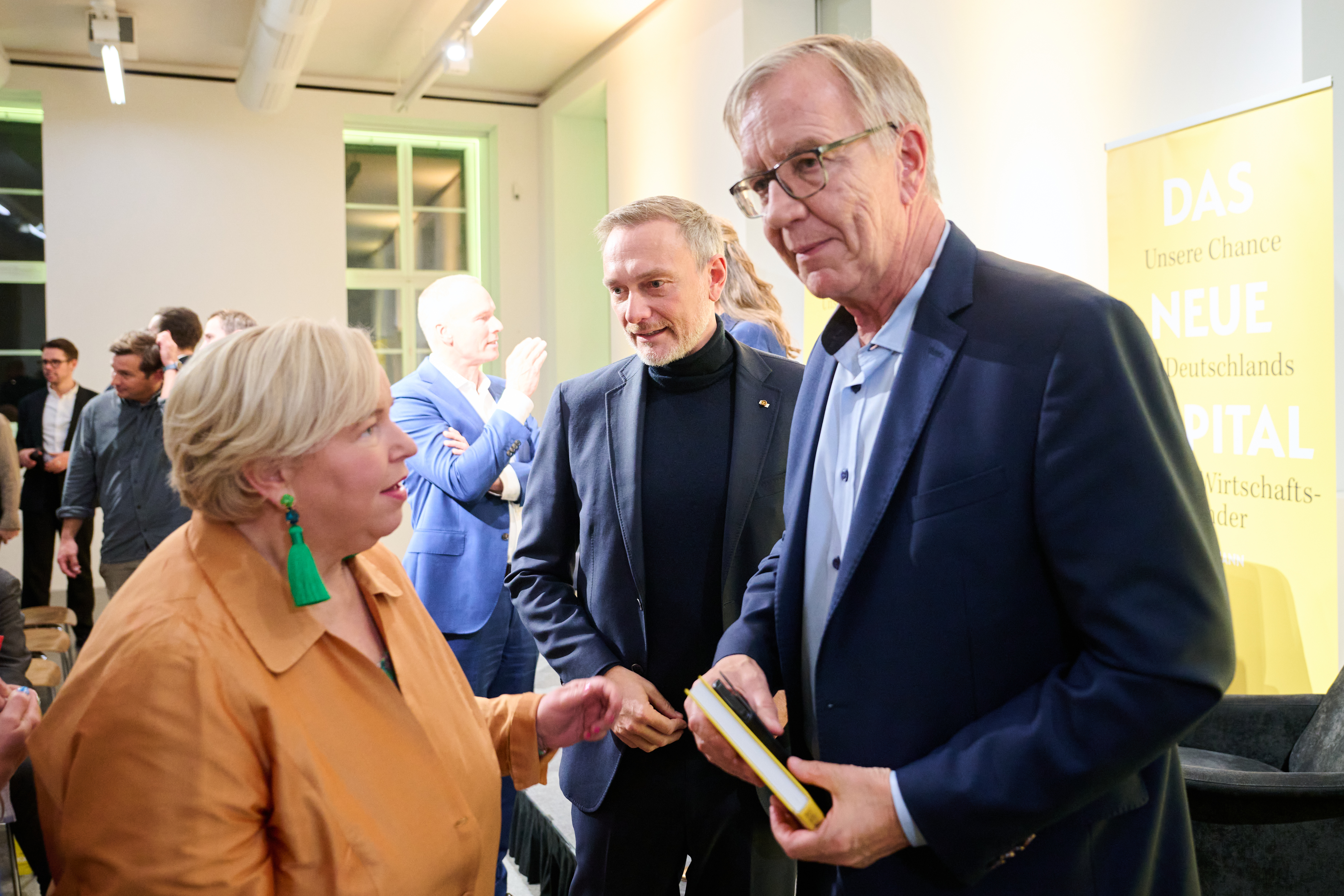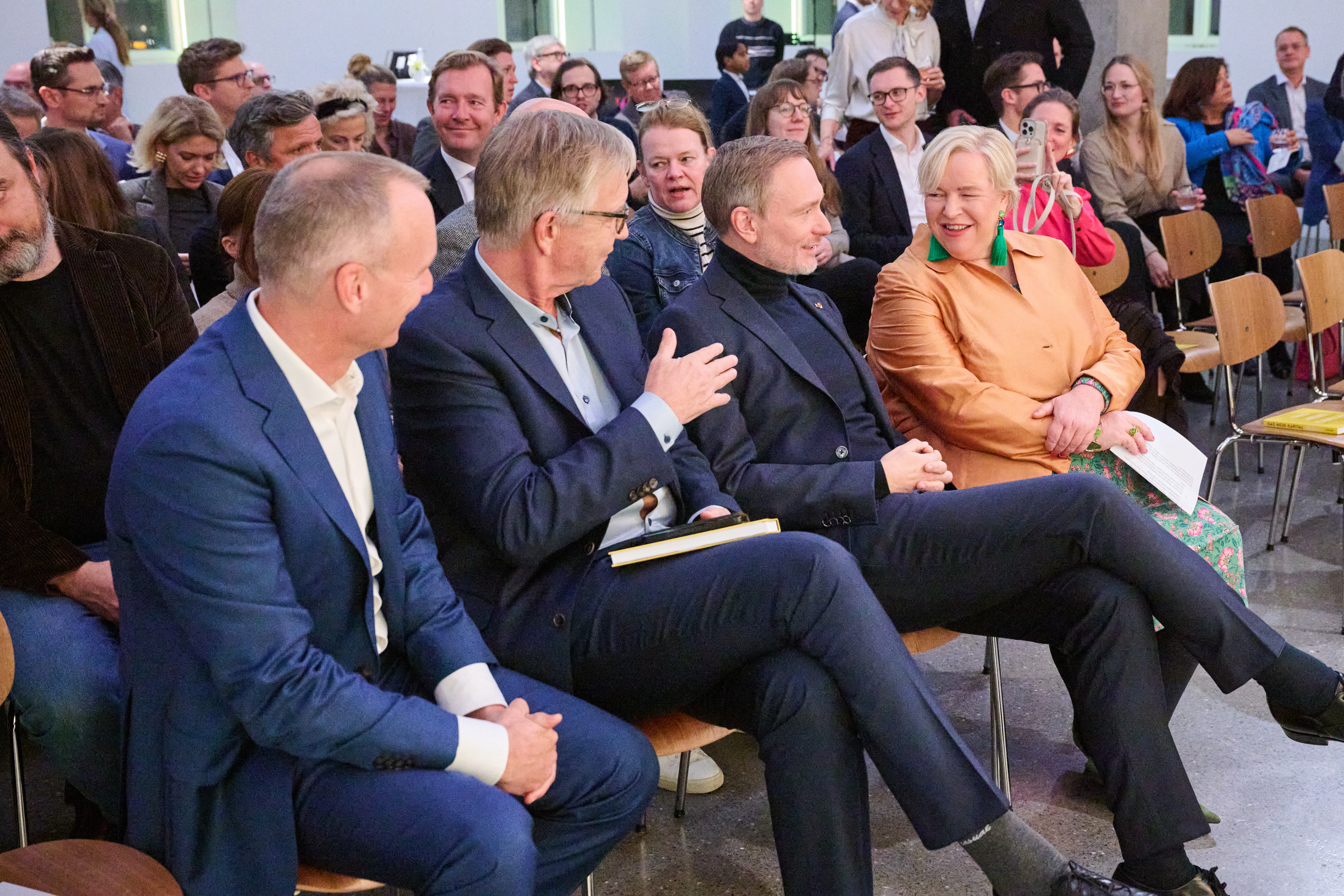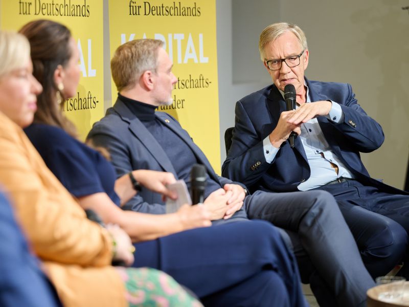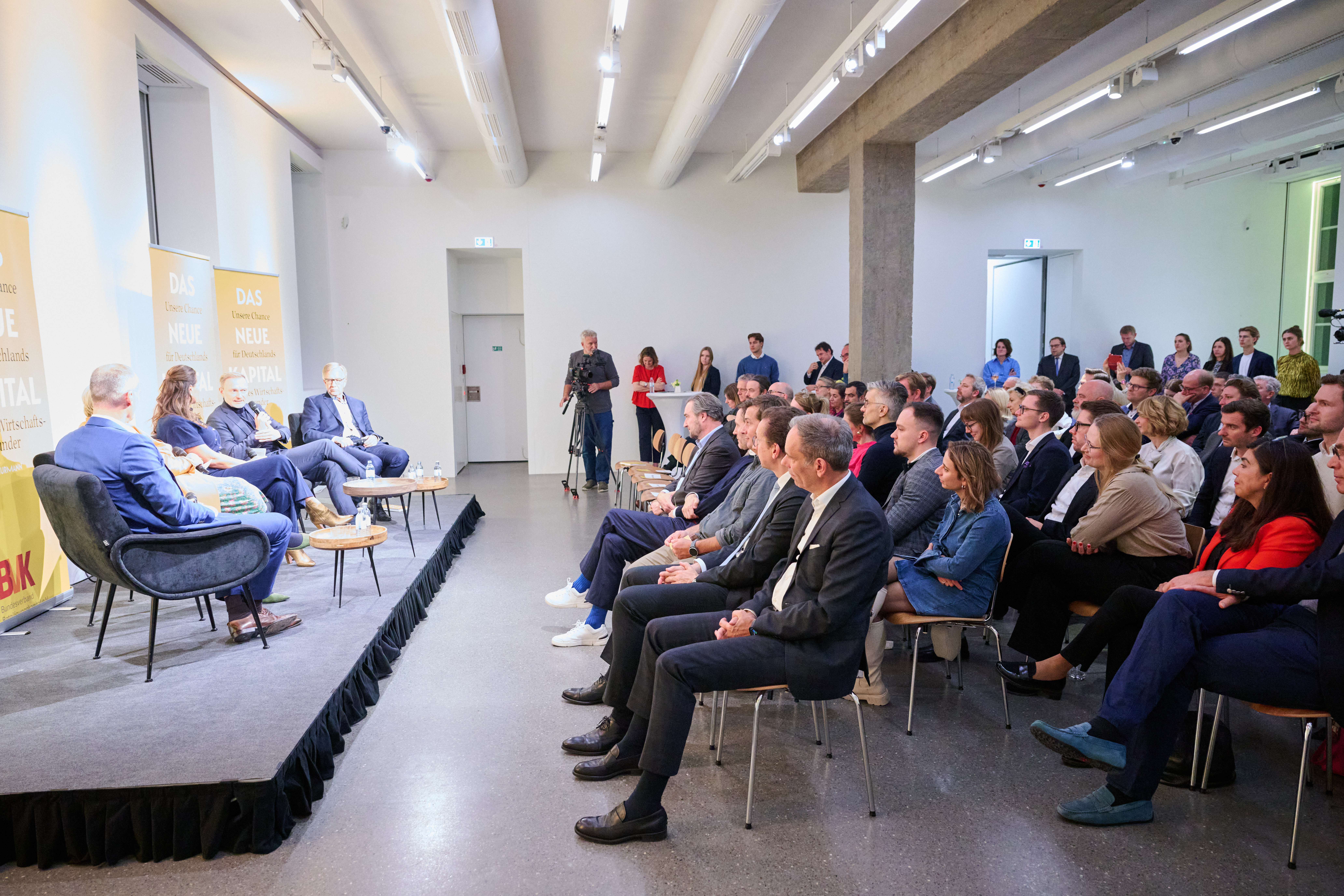 Am 4. November 2025 präsentierte der BVK gemeinsam mit dem Murmann Verlag das neue Buch Das Neue Kapital im Berliner PalaisPopulaire. Im Gespräch mit den Herausgebern und BVK-Vorstandssprechern Ulrike Hinrichs und Dr. Ingo Krocke sowie Dr. Sven Murmann, Christian Lindner (Bundesminister der Finanzen a. D.) und Dr. Dietmar Bartsch MdB standen die Fragen im Mittelpunkt, wie privates Kapital Innovation, Klimaschutz und Wettbewerbsfähigkeit vorantreiben kann – und welche Impulse es für ein neues Wirtschaftswunder setzt. Zum Ausklang bot der Abend spannende – teils auch kontroverse – Perspektiven und anregenden Austausch bei Drinks & Dinner.